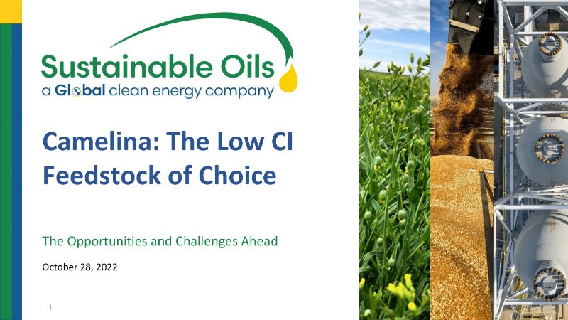 Sustainable Oils Camelina has emerged as the crop feedstock of choice for renewable diesel production. Renewable diesel made from Sustainable Oils Camelina is a high-demand drop-in fuel that meets all specifications for today’s engines, on par with diesel produced from petroleum. Sustainable Oils Camelina varieties are the only camelina approved for the California LCFS. Sustainable Oils’ Barney Bernstein presented these slides on the company’s promise and progress at ABLC NEXT 2022.