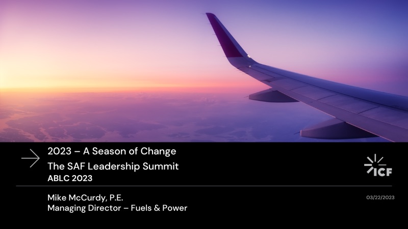 Check out this illuminating slide guide to SAF from Mike McCurdy, Managing Director of Fuels & Power at ICF on how sustainable aviation fuels are taking off in the near term with the latest projected figures for 2023 through 2025, expected openings of additional refinery capacity, how the SAF market has changed, pricing, where it’s going, and more. As McCurdy observes, “it’s a season of change” and this SAF guide is the best we’ve seen on how to navigate the twists and turns.