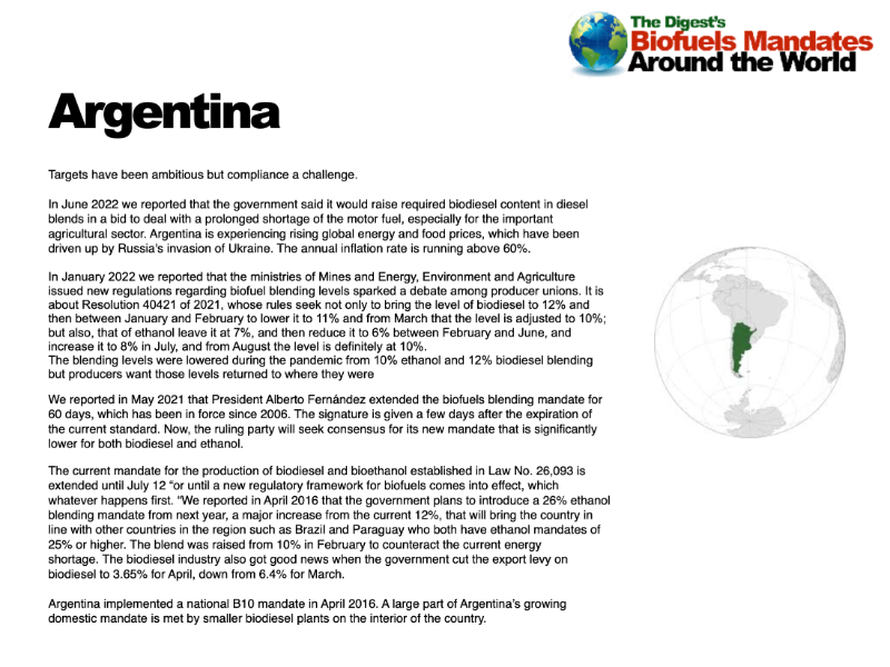 The Digest’s Biofuels Mandates Around the World 2024