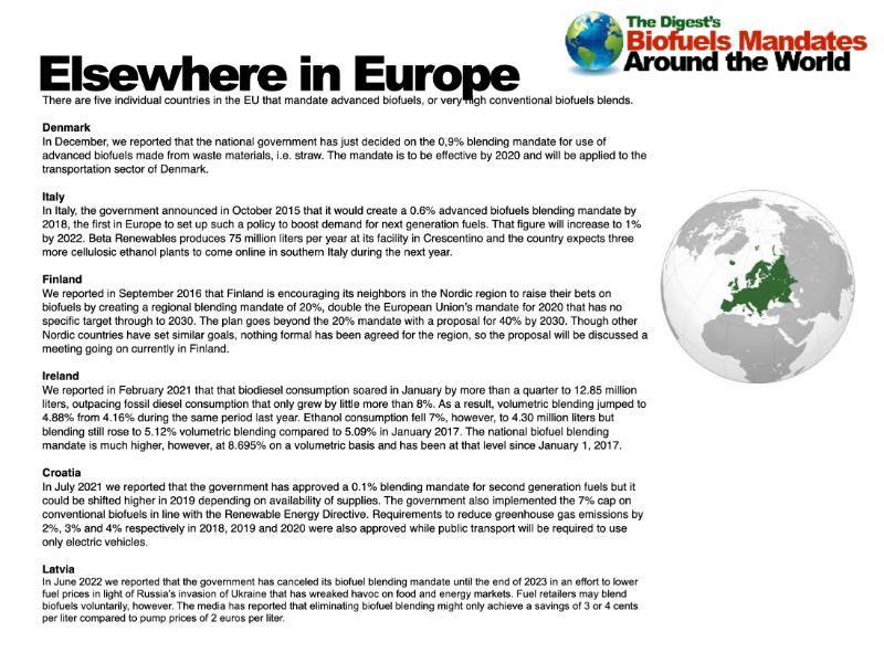 The Digest’s Biofuels Mandates Around the World 2024