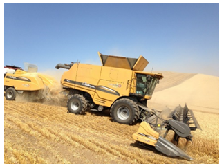 In the Single Pass System, the combine and baler are linked together thereby eliminating the shredding and the need for a tractor to follow the shredder pulled by a tractor. This makes for a much more efficient and economical system. The overall cost of the single pass system is some 30-35% less than the cost of the multi-pass system. This also makes for the highest quality feedstock because it has been harvested and baled without ever having touched the ground. This is currently being used in harvesting wheat straw in the Pacific Northwest as shown in the picture below.