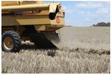 In the Single Pass System, the combine and baler are linked together thereby eliminating the shredding and the need for a tractor to follow the shredder pulled by a tractor. This makes for a much more efficient and economical system. The overall cost of the single pass system is some 30-35% less than the cost of the multi-pass system. This also makes for the highest quality feedstock because it has been harvested and baled without ever having touched the ground. This is currently being used in harvesting wheat straw in the Pacific Northwest as shown in the picture below.