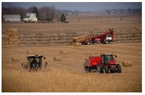 There are two state-of-the art systems in use today for the harvesting, collection and delivery of ag residues. They are known as the “Multi-Pass” and the “Single Pass” systems. For purpose-grown crops such as miscanthus or switch grass there is only a Multi-Pass System consisting of two passes through a field. As a general rule the single pass system will provide the lowest ash levels in the feedstock collected. This is because the material never touches the ground; however, as mentioned above, this system is not available for all feedstocks. Different materials will be harvested at significantly different moisture contents. Some materials are harvested after the plants have dried in the field, others are harvested at much higher moisture contents. But experienced baling crews can manage moisture and ash quite well.