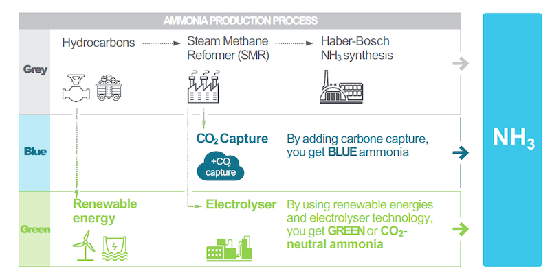 When the Egyptians painted Ammon’s portrait, he was blue. Today, we might paint him teal — a little green mixed in with the blue to symbolize the transition from grey ammonia (made from natural gas) to blue and green ammonia made with renewable goals in addition to the functional one.